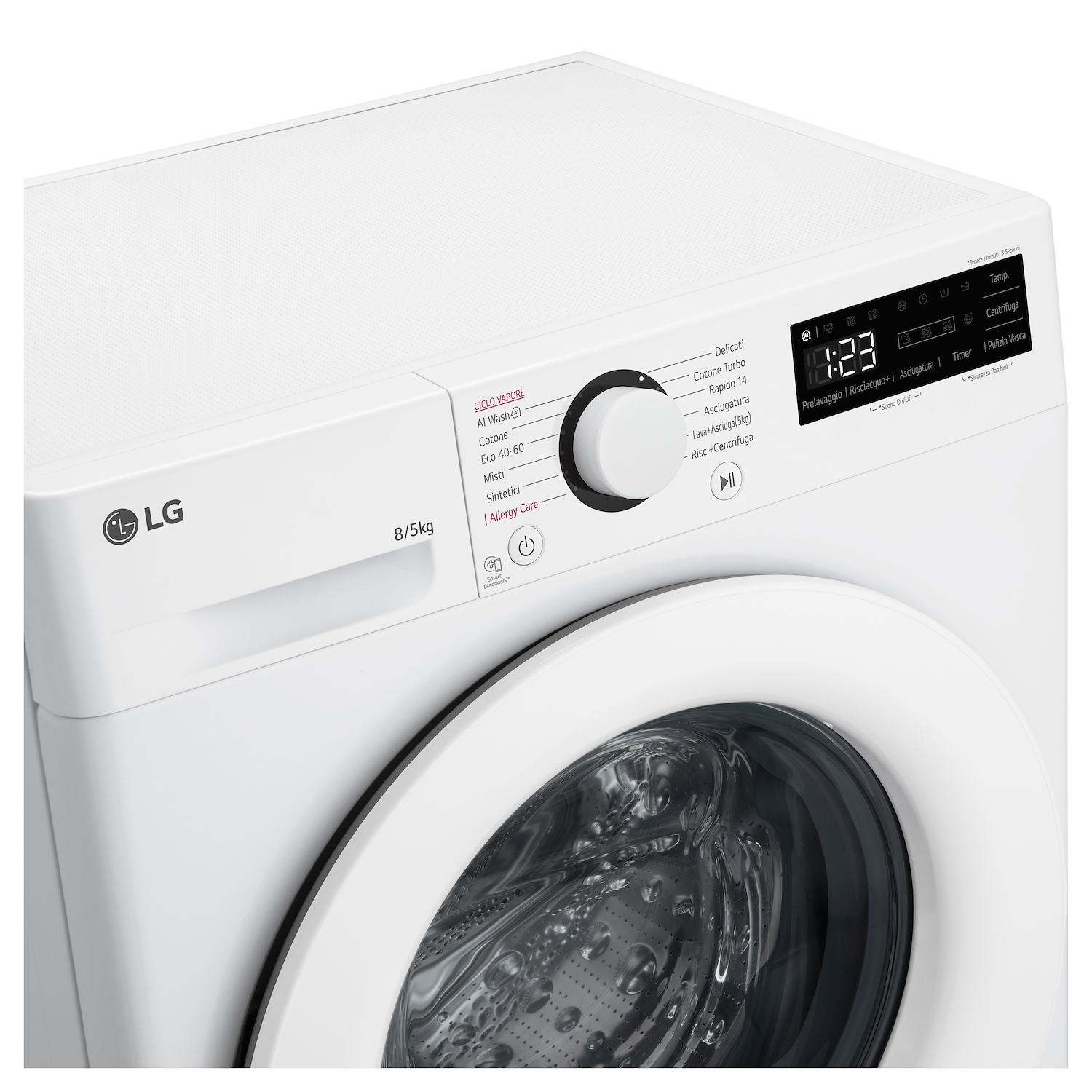 | Altri programmi di lavaggio | AI Wash, Cotone, Eco 40-60, Misti, Sintetici, Allergy Care, Delicati, Cotone Turbo, Rapido 14, Asciugatura, Lava + Asciuga 5kg, Risciacquo + Centrifuga |